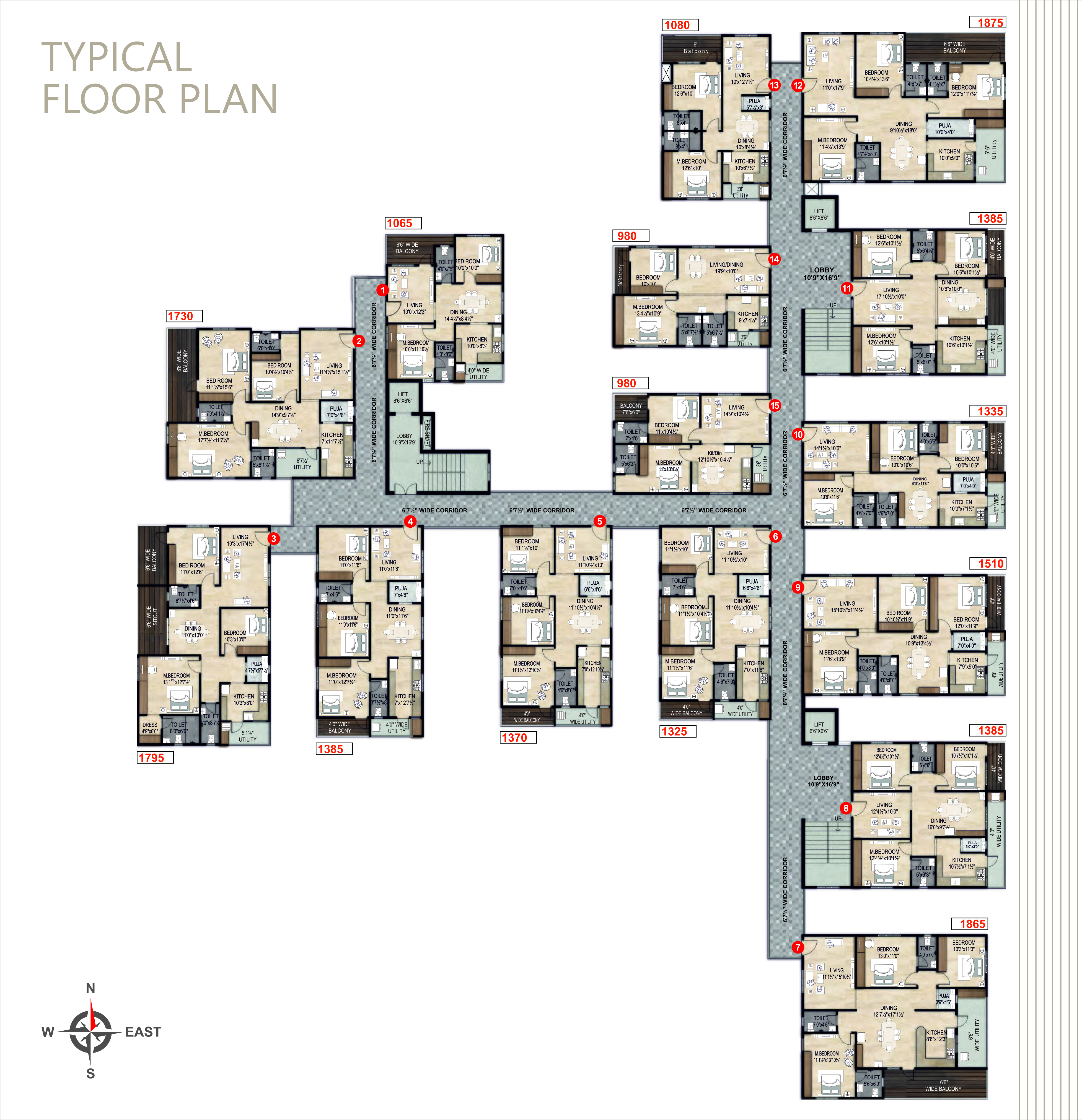 - Number of flats/floor: 15